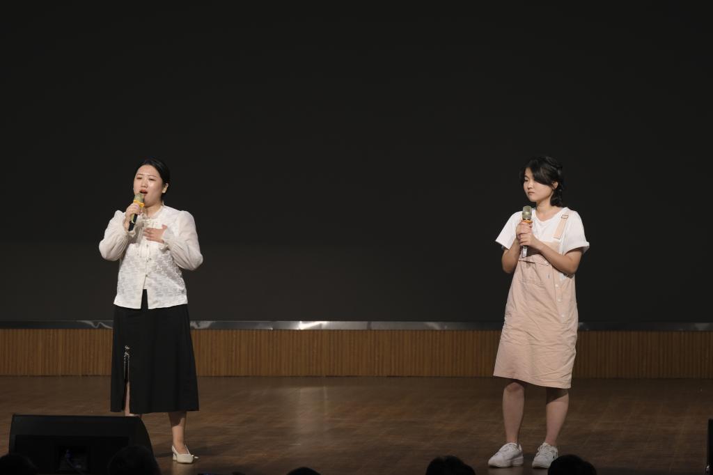 典礼的最后,一场别开生面的感恩教育活动展开。辅导员黄娟和23级新生深情演唱的《是妈妈是女儿》直击心灵,催人泪下。随后家长们上台与子女进行互动。平时不善言语的同学们为自己的父母献上了一束鲜花和拥抱,表达自己的爱意和感激之情,最后全体师生共同进行感恩宣誓。通过这样走心的教育方式,拉近学生与家长的距离,让学生们学会感恩,常怀感恩之心。