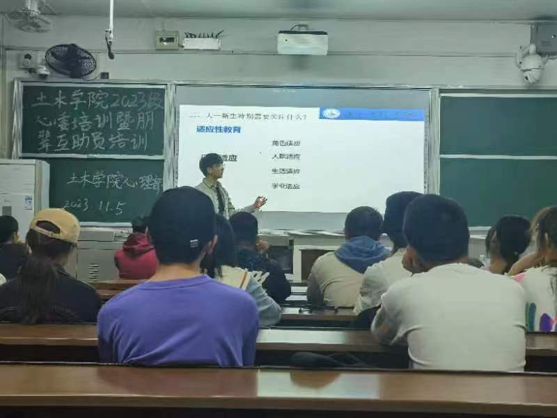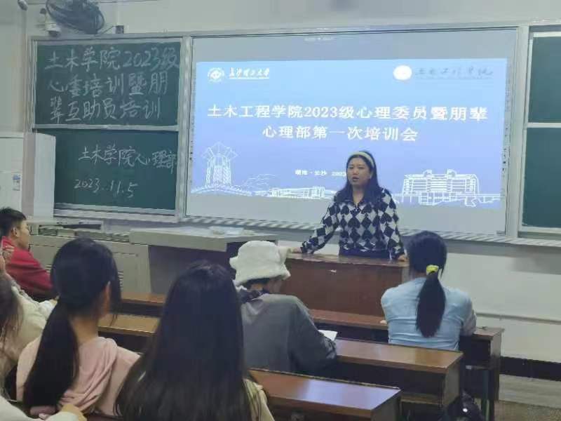 为培养心委的工作能力和提高工作效率,加强学院的心理健康建设,11月5日周二下午5点,土木学院心理部在金盆岭校区12栋教学楼306教室组织召开了心理委员暨朋辈心理互助员第一次培训会。本次会议由土木学院心理辅导老师黄娟老师主持,全体23级心理委员,全体心理部成员参加。
