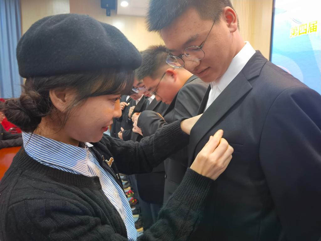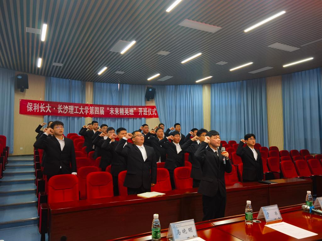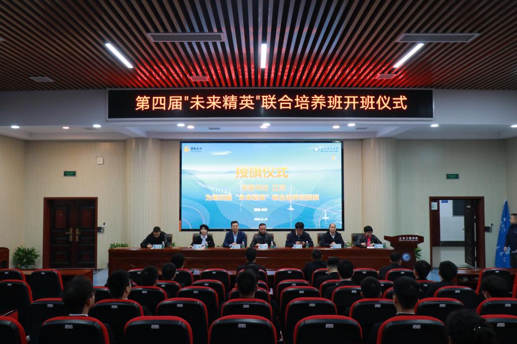 接着,学员代表梁标对母校的悉心培养以及保利长大为他们提供的广阔平台十分感谢。他坦言:“作为长理学子我们一定会不懈努力,激发作为“土木人”的责任感和使命感,以高水平科技创新积极回馈社会,努力成为土木行业中的优秀复合型人才。”随后,江河为第四届“未来精英”联合培养班进行了授旗,学员代表接过班旗与全体学员一起进行了庄严宣誓。黄阿明、李娜为学员们佩授司徽。