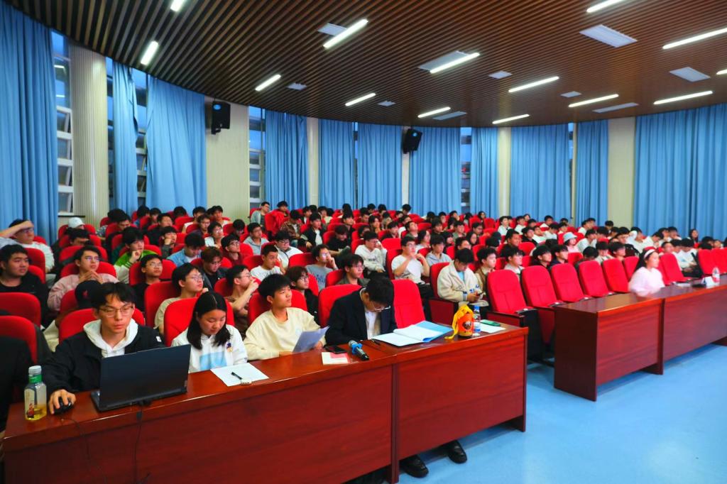 高年级学生周苇朝等进行了保研经验分享,他们展示了在大学期间的收获,重点分享了自己在结构设计大赛、力学竞赛、“挑战杯”大赛、“互联网+”大赛等方面的经验,用自己的故事鼓励更多的同学积极投身学习和实践。