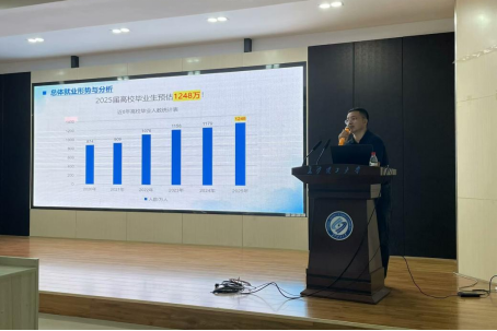 汪国栋通过展示2024年研究生就业数据,并与近几年的就业形势进行对比,说明当前就业形势的严峻性。他介绍了正确的自我认知与职业定位在就业进程中的核心意义,点明就业的核心要点在于精准寻获 “最合适” 自身的岗位,而非片面追求 “最好” 的工作。他表示心理准备是成功就业不可或缺的关键环节,鼓励研究生们以乐观向上、勇往直前的心态直面就业挑战,同时要清晰明确自身的内在需求以及长远的职业目标,为未来的职业发展之路奠定坚实基础。