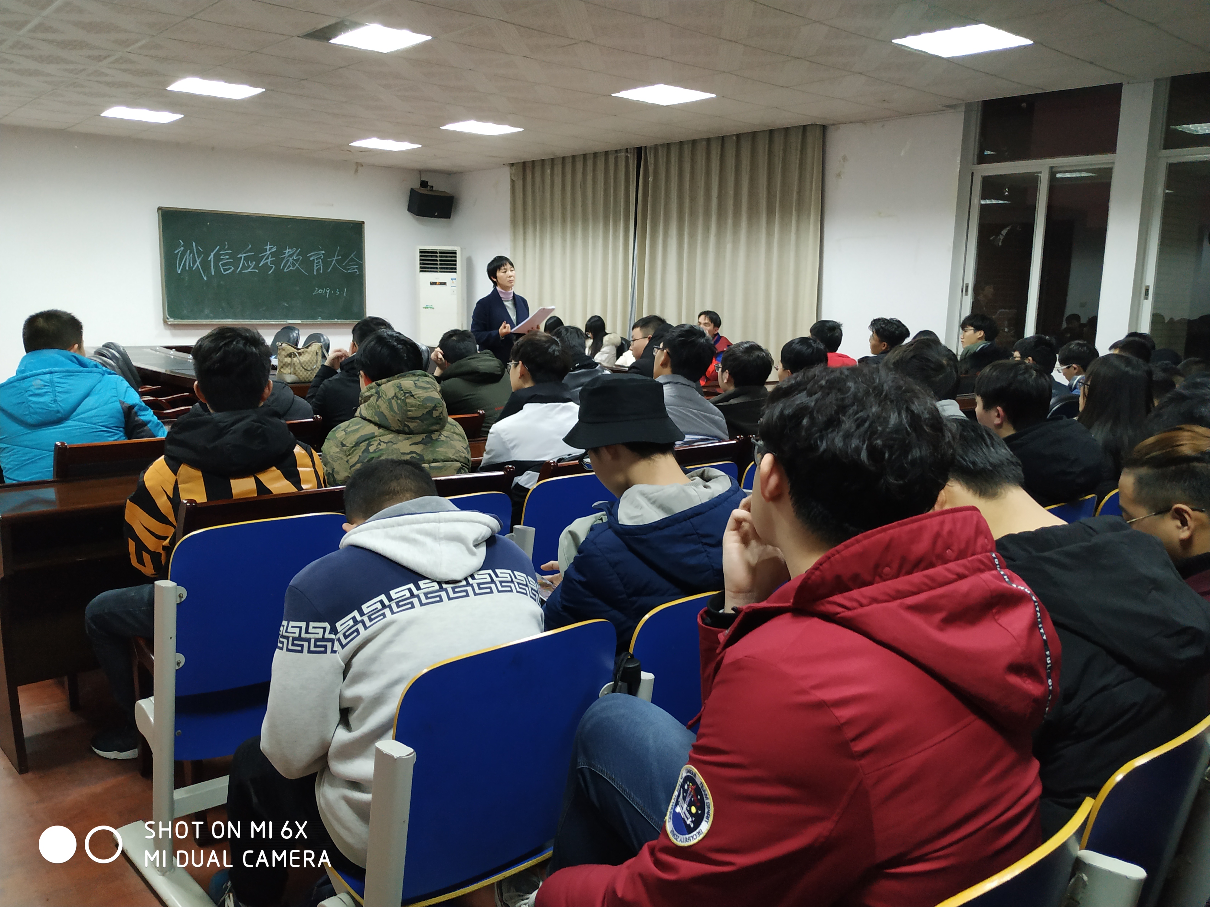 为了进一步加强开学补考的考风考纪,构建诚信考场,3月1日晚18点30分,土木工程学院在工二A502召开诚信应考教育大会。会议由辅导员贺佐杰主持,全体参加补考的同学参加。