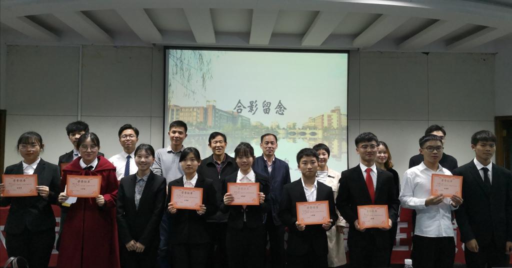 通过评委的评审,最后评出一、二、三等奖和优胜奖若干名,土木1806班的谢承禹获得本次比赛冠军,领导老师为获奖选手颁奖并合影。至此,本次演讲比赛圆满结束。