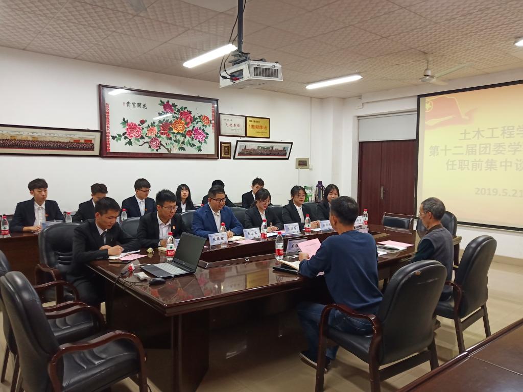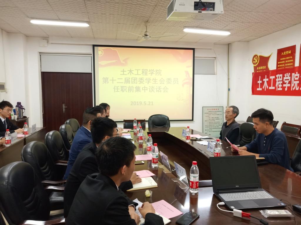 5月21日下午,土木工程学院第十二届团委学生会委员任职前集中谈话会在云塘校区举行。院党委书记张可荣,院团委书记李小军以及第十二届团委学生会全体委员参加会议。党委副书记王煜坤主持谈话会。