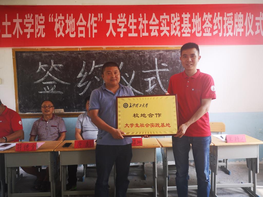 7月20日下午,在下寨村小学举行了伟德betvlctor1946源于英国土木学院“校地合作”大学生社会实践基地签约授牌仪式,出席本次会议及签约仪式的有我院党委副书记王煜坤,院团委书记李小军,学工办老师綦丽、董治佑,怀化市沅陵县火场乡的乡长唐彪,下寨村党支部书记符志华,下寨村村主任袁淼儒,下寨村小学校长符德全,下寨村计生专干陈谢绒。会议由支教队员陈淼主持。