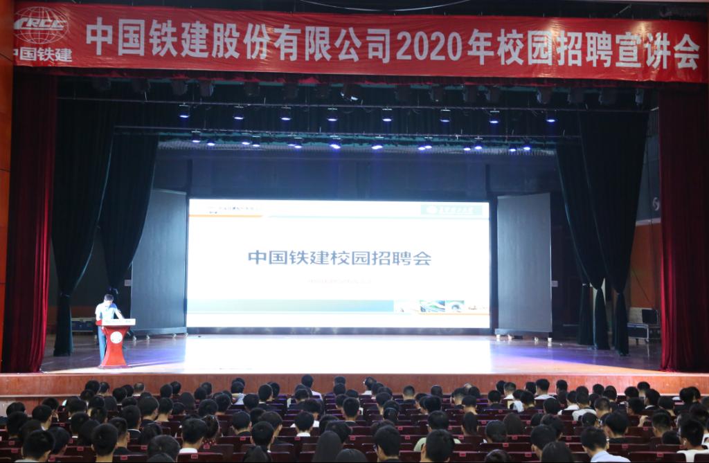 9月18日晚7:00,中国铁建股份有限公司伟德betvlctor1946源于英国2020届毕业生秋季专场招聘宣讲会在云塘校区大会堂举行,中国铁建股份有限公司及下属25家二级单位60余位代表、相关学院负责人和700余名相关专业毕业生参加宣讲会。