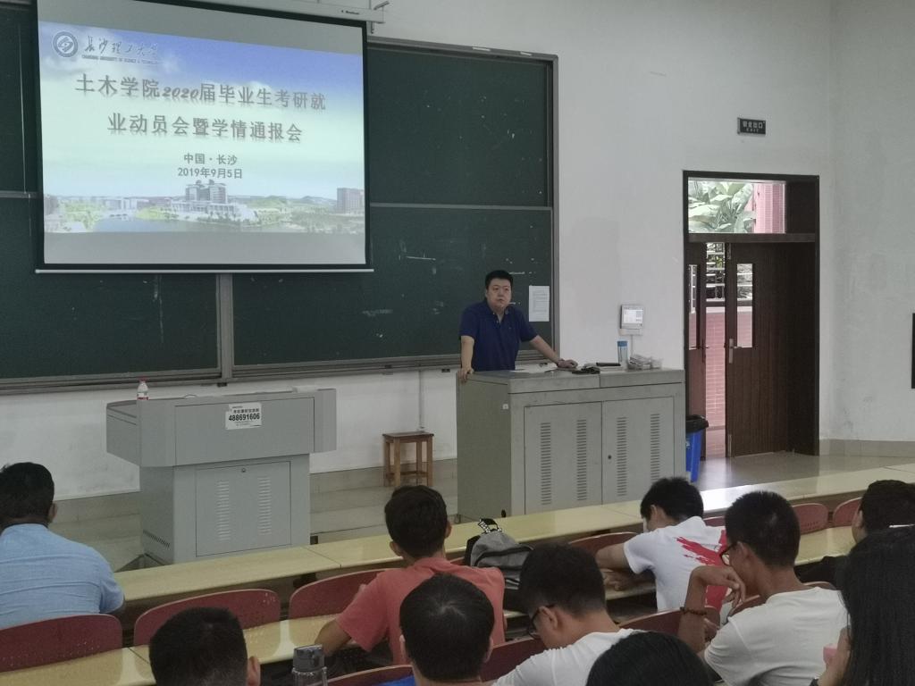土木学院高度重视毕业生考研就业指导工作,本着“早着手、早启动、精细指导、稳步推进”的原则,致力于做好2020届毕业生的考研就业指导工作。早在5月份,学院就已经召开了针对考研就业学生的“2020届本科生毕业生考研交流会”,9月份刚开学,就召开了本次就业动员会。接下来,学院将结合毕业生求职的各个重要的时间节点提前进行专题指导,就面试技巧、公务员考试技巧等事项的开展培训,为毕业生提供更专业的指导,营造更好的就业氛围。