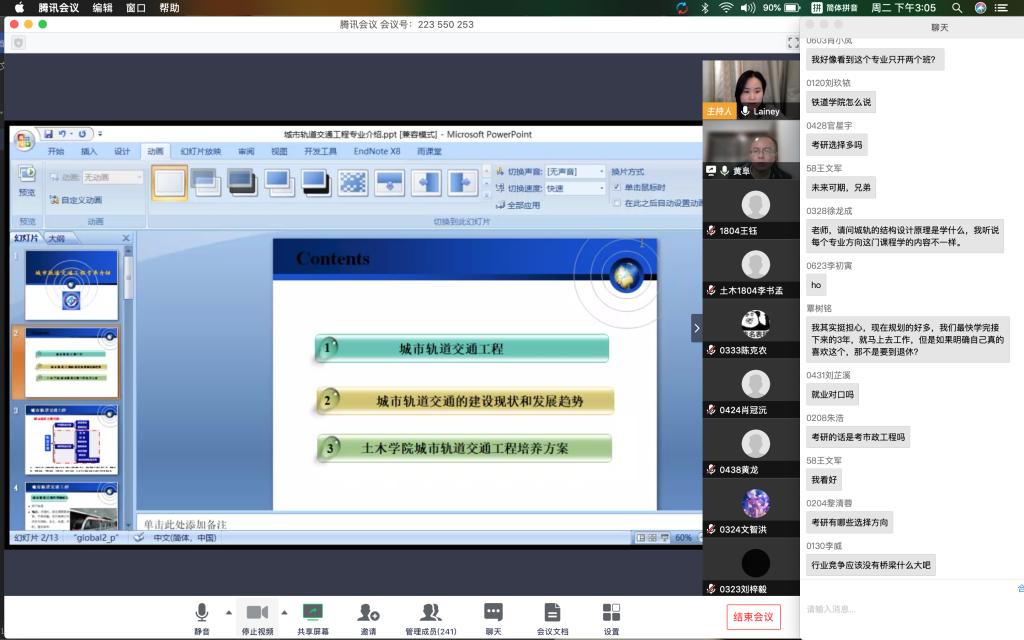 3月3日下午,土木工程学院举行2018级土木大类专业分流空中宣讲会。桥梁系陈卓异老师,建工系王中强老师、岩土与隧道工程系城市轨道工程方向黄阜老师、隧道工程方向柳厚祥老师、岩土工程方向陈文胜老师,学工办老师龙承运、綦丽及土木类2018级学生参加此次会议。