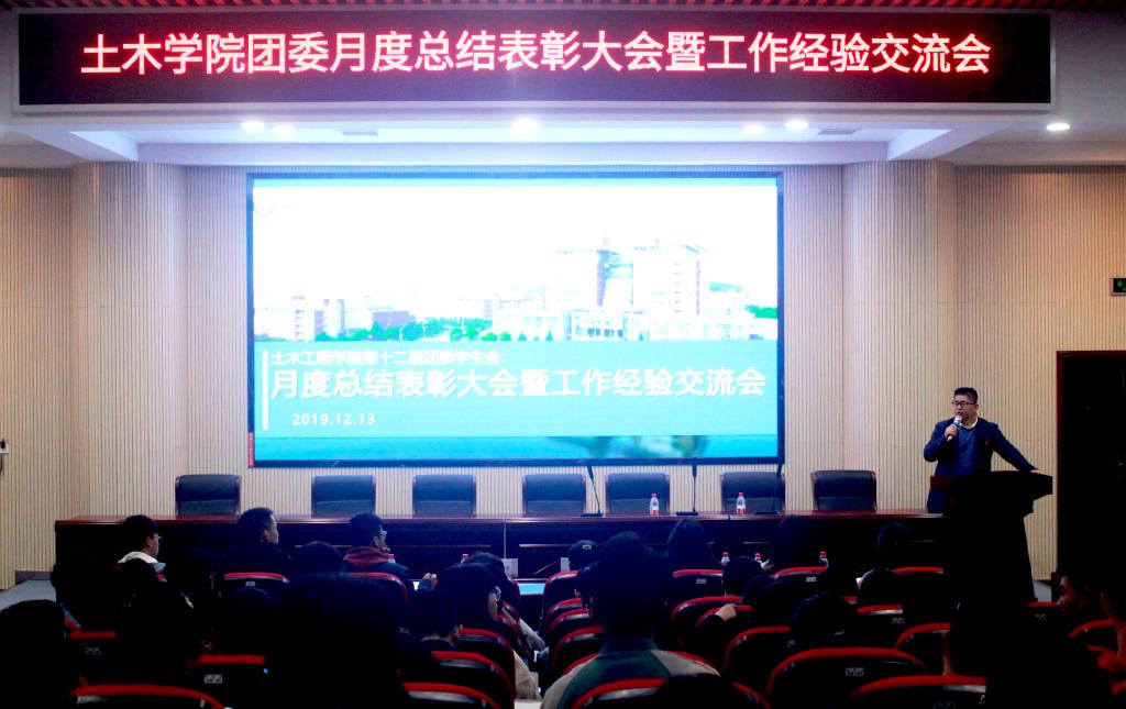 12月13日晚,土木学院在在工科二号楼召开了月度总结表彰大会暨工作经验交流会。院党委副书记丁丹,学生会全体成员参加此次会议,本次会议由院团委书记李小军主持。