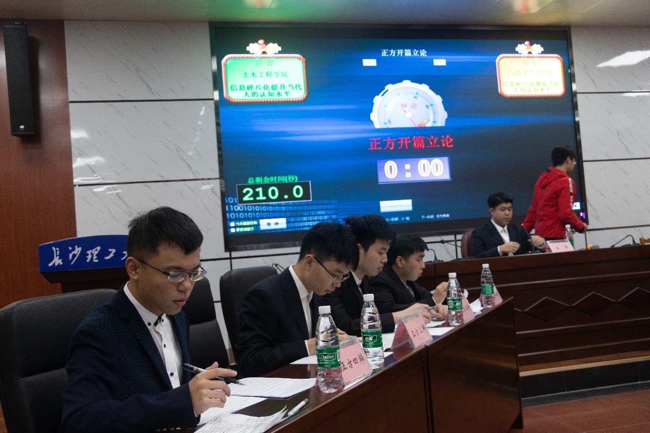 在主持人开场致辞后,辩论赛正式开始,我院与马克思学院之间半决赛的辩题为“信息碎片化提升还是降低了当代人的认知水平”,我院为正方,所持观点为提升了当代人的认知水平,马克思学院为反方,所持观点为降低了当代人的认知水平。