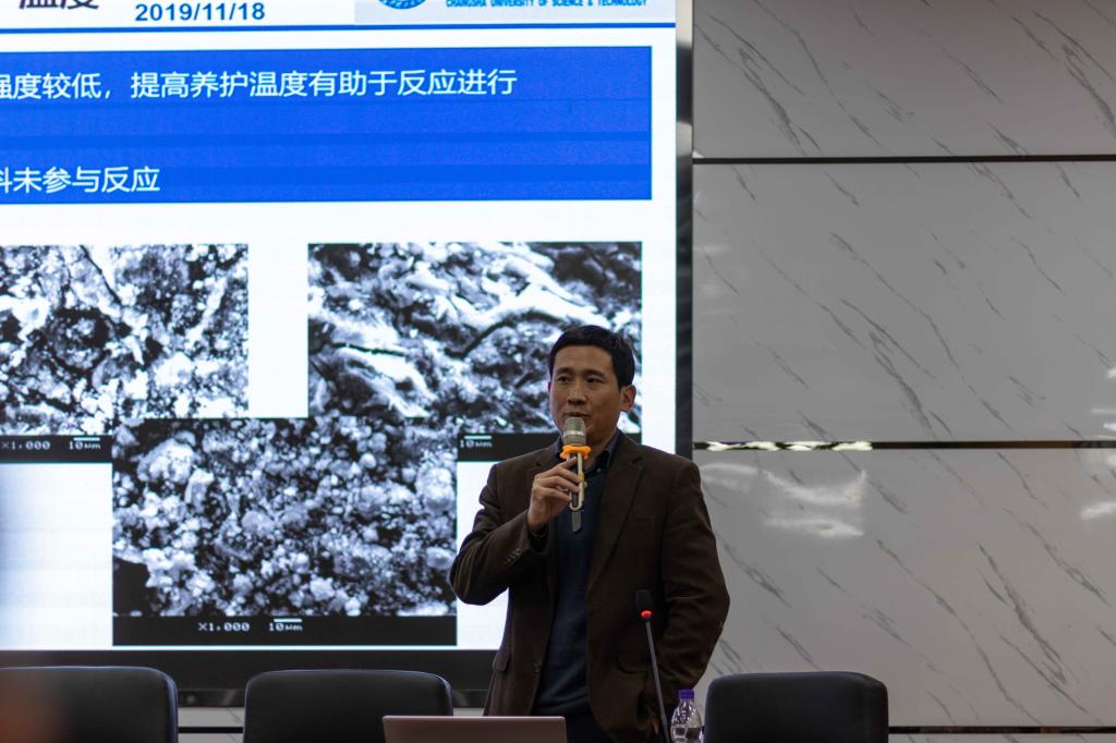 彭晖教授以偏高岭土基地聚物课题研究为主题,向同学们从6个方面介绍了地聚物的有关内容。地聚物多以工业废弃物和工业矿物为原料,彭教授此次分享主要为以偏高岭土为原料碱性激发剂。彭教授的研究涉及到了学科交叉领域,研究中对材料学、力学和结构分析的应用也让同学们叹为观止。彭教授在课题报告的最后对地聚物应用在混凝土上的情况进行了总结,并对偏高岭土与矿渣的有效配比产物的氯离子渗透性进行了分析,对地聚物的未来应用前景进行了展望。