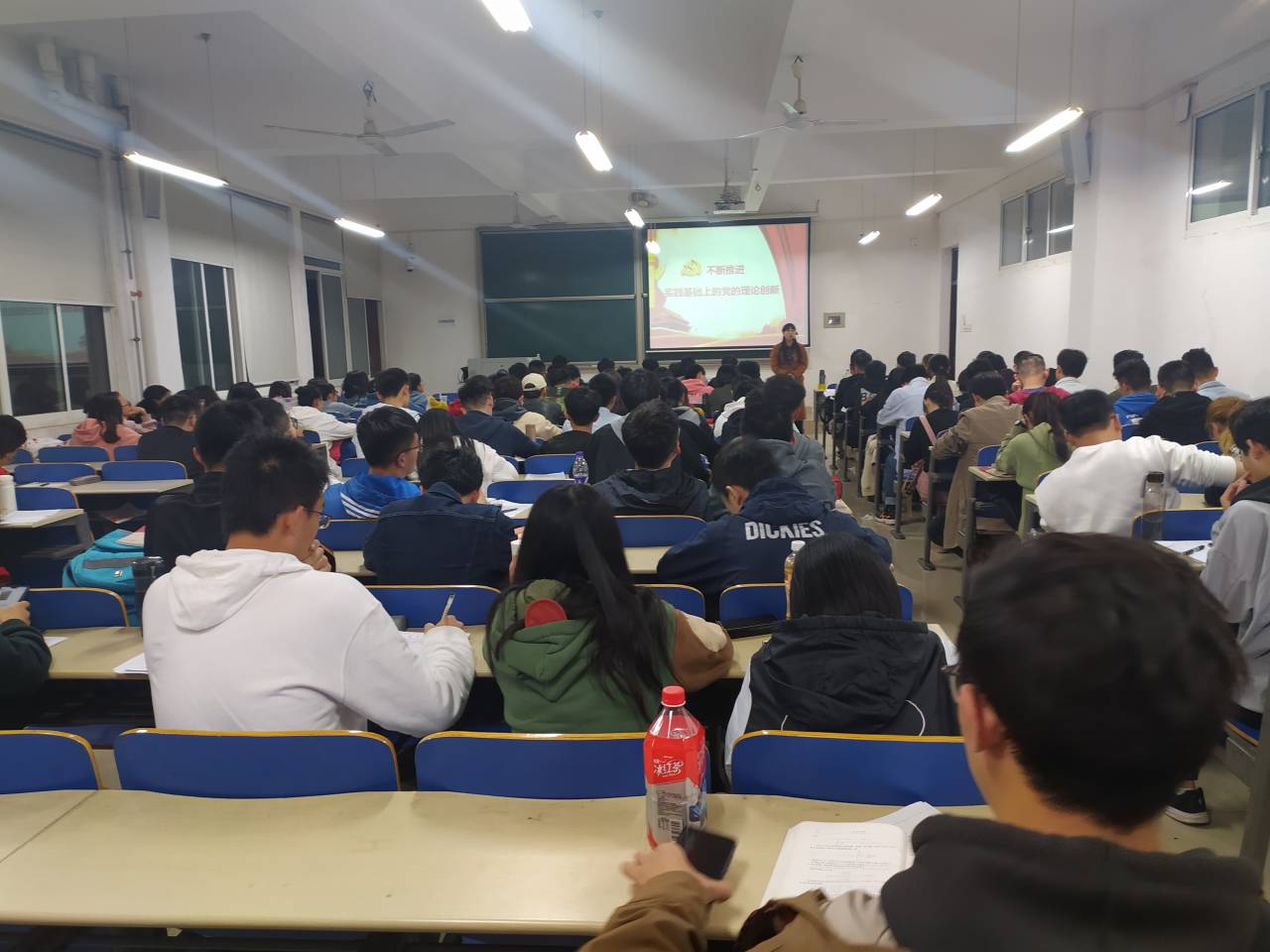 11月13日晚,土木、外语学院分党校组织第34期入党积极分子在工科一楼A214开展《习近平新时代中国特色社会主义思想》专题党课,由马克思主义学院副教授郭华进行授课,培训班全体学员参加。