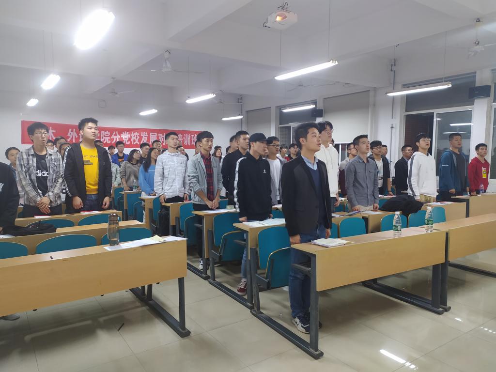 11月11日晚,土木、外语学院分党校第十期发展对象培训班开班典礼暨第一次党课在工科一楼A215举行,由学工部思政科任志祥老师主讲,党建辅导员龙承运及全体学员参加。