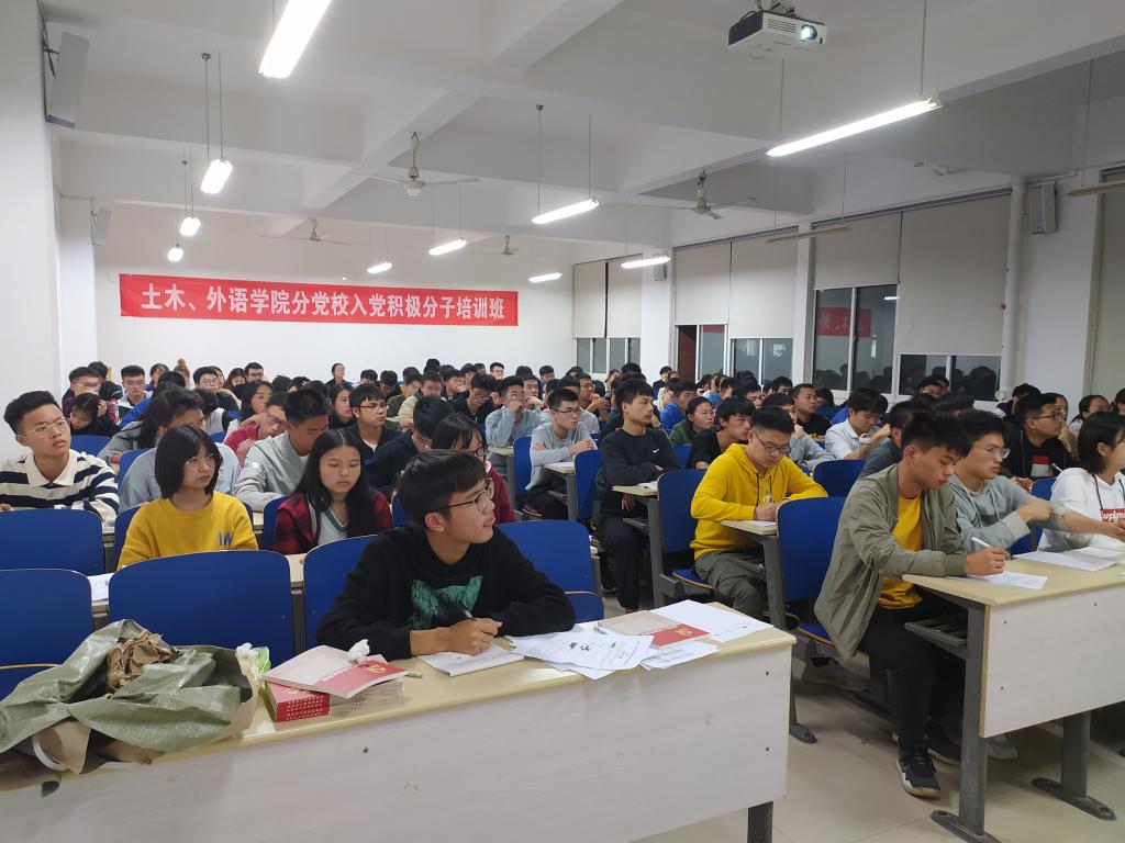 11月4日晚,土木、外语学院分党校第34期入党积极分子培训班开班典礼暨专题党课在工科一楼A214举行,土木学院党委副书记王煜坤、党建辅导员龙承运及全体学员参加。