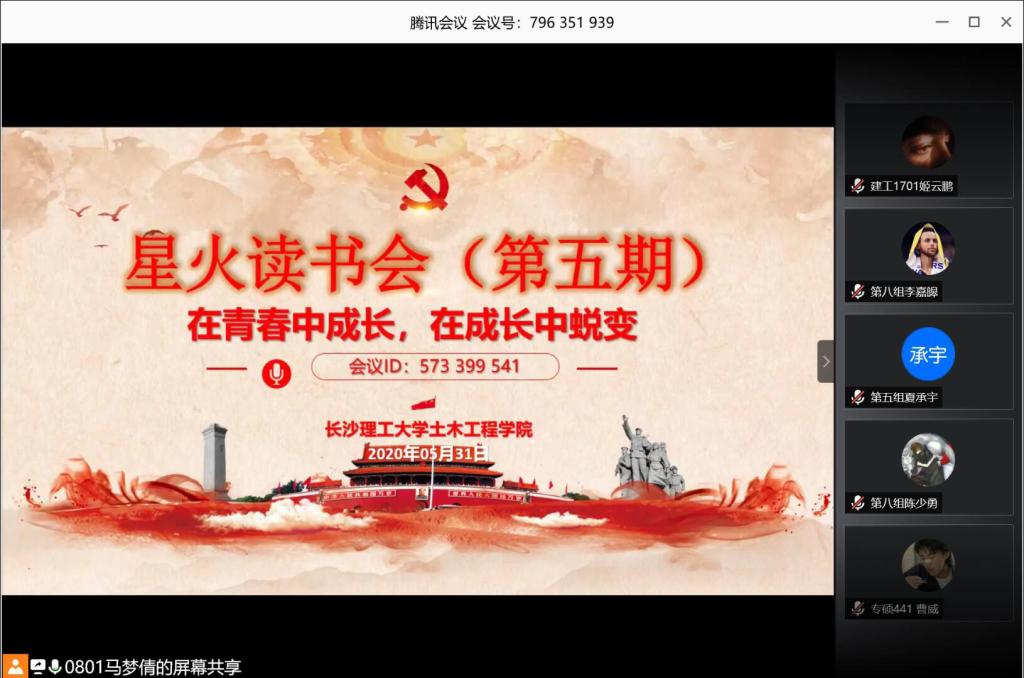 6月1日晚,由土木工程学院党委主办的“疫情防控践初心、严峻斗争担使命”系列主题党日活动——星火·读书会(第五期)于腾讯会议平台举行。本次读书会的主题为“在青春中成长,在成长中蜕变”,学生党总支副书记李小军、学院第21期预备党员培训班以及第35期积极分子培训班部分学员参与读书会。