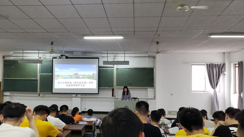 9月15日下午,土木学院研究生辅导员胡蓉组织2020级研究生在金盆岭12教300集中学习了《研究生手册》的教育与管理专题,2020级全体研究生参加了此次学习。
