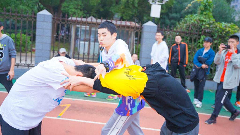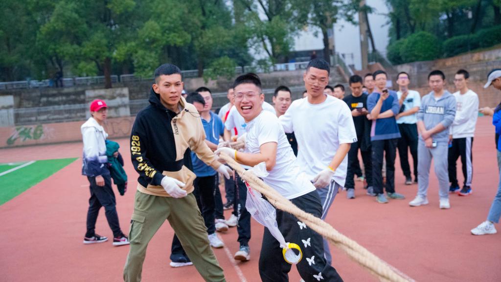 本届趣味运动会共有拔河、滚雪球、多足虫竞走、多人跳绳、铁人三项五个项目。它不仅考验个人能力,更加考验团队协作能力,侧重增强班级凝聚力、集体荣誉感和团队合作能力。本届趣味运动会体现了“全员参与、全面发展”的活动理念,将 “趣味”这一思想融入运动会,从开幕式到所有项目的比赛,真正体现了趣味性、娱乐性、普及性、健身性。同学们都玩出了精彩,赛出了新意,表现出了极高的热情。工力2001班全体拔河项目的队员戴着面具参加比赛。土木2002班分工明确,场上场下全员参与拔河比赛。所有同学都能在赛场上大显身手,在活动中体验参与的快乐,在比赛中享受胜利的喜悦。
