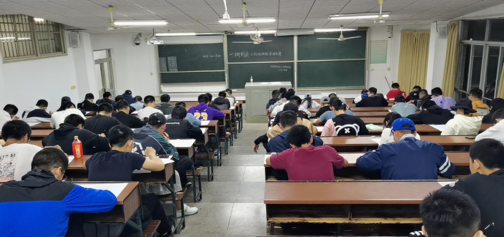 本次竞赛题目类型分为词汇的英汉互译和阅读理解。开考前夕,监考人员向全体同学强调了考试时间、座次安排以及考试纪律等事项,强调了“诚信应考”的基本原则。希望大家以专注、认真的态度对待此次考试,认真审题,查漏补缺。分发试卷后,紧张的笔试考试正式开始。监考人员各司其职,认真监考,防止作弊情况发生。同学们认真作答,将近期在百词斩上所学知识与自主学习内容整合归一。考试结束后,按座位从前往后依次顺序交卷。考试期间,考场秩序依旧井然,无作弊和交头接耳的现象发生,展现出了2020级土木学子良好的考风。