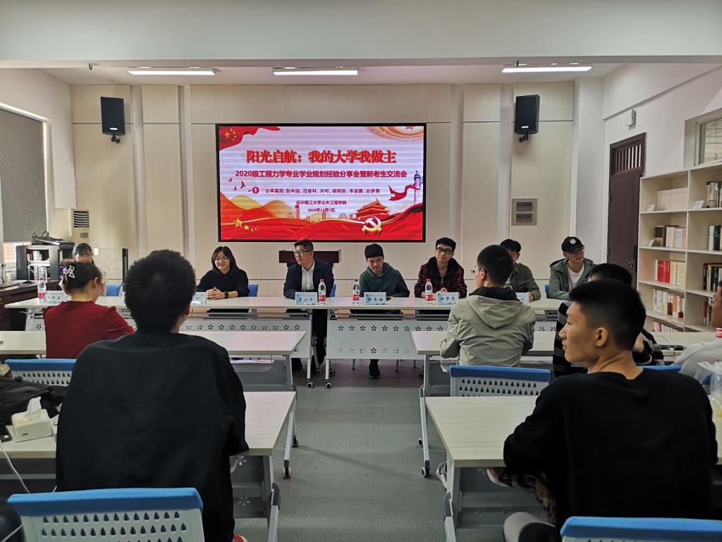在交流座谈环节中,2020级新生围绕目前存在的思想困惑和学习生活问题积极提问,各位主讲人一一给予耐心细致的解答。通过本次交流会活动也让工程力学专业的全体新生对自己的专业和大学生活有了更深的了解和更清晰的认识,对自己的四年的大学生活有更清楚的规划,同时也引导新生向优秀看齐,把优秀当成一种习惯。