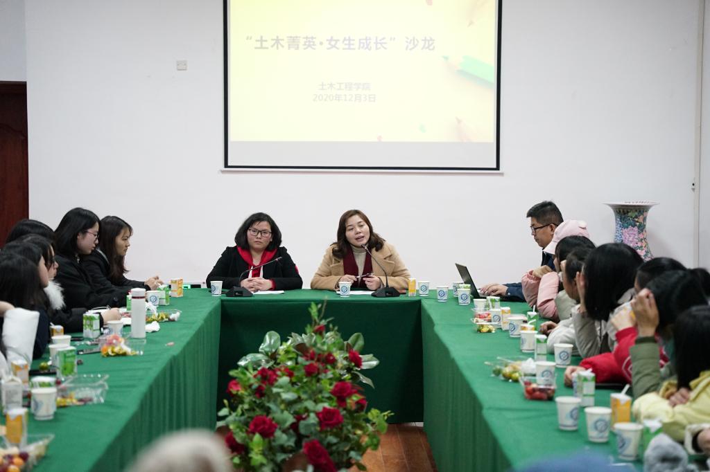 12月3日晚,土木工程学院在校友之家开展了“土木菁英,女生成长”主题沙龙活动,学院党委书记丁丹,副书记黄阿明,2020级辅导员李小军、文岚及2020级全体女生参加。