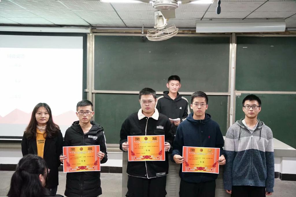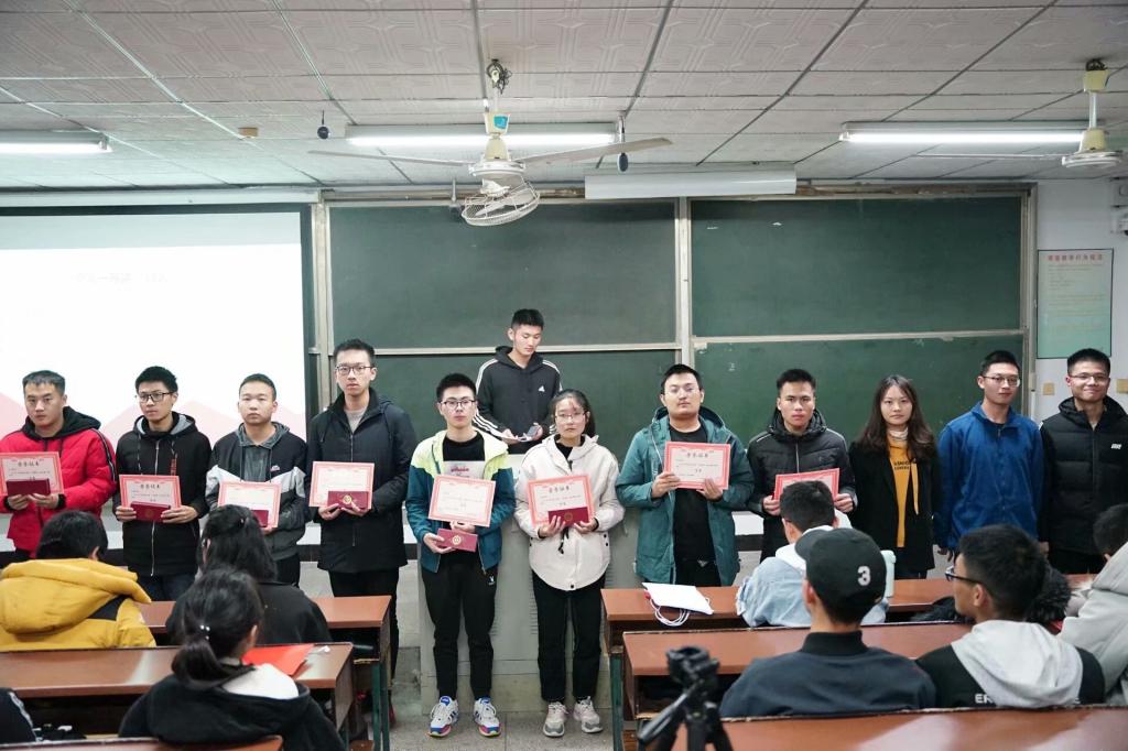 仪式上,年级分会学竞部部长喻礼斌首先对本次活动进行了总结,并现场宣读了获奖名单。他强调,获奖同学依靠努力收获了优异的成绩结,希望大家继续努力,争取在即将到来的四级考试中取得理想的成绩。随后,文岚和年级分会主席团成员韦超、颜仲良分别为获奖选手颁发了一二三等奖,还有具有纪念价值的奖品,颁奖嘉宾同获奖学生一一合影留念。