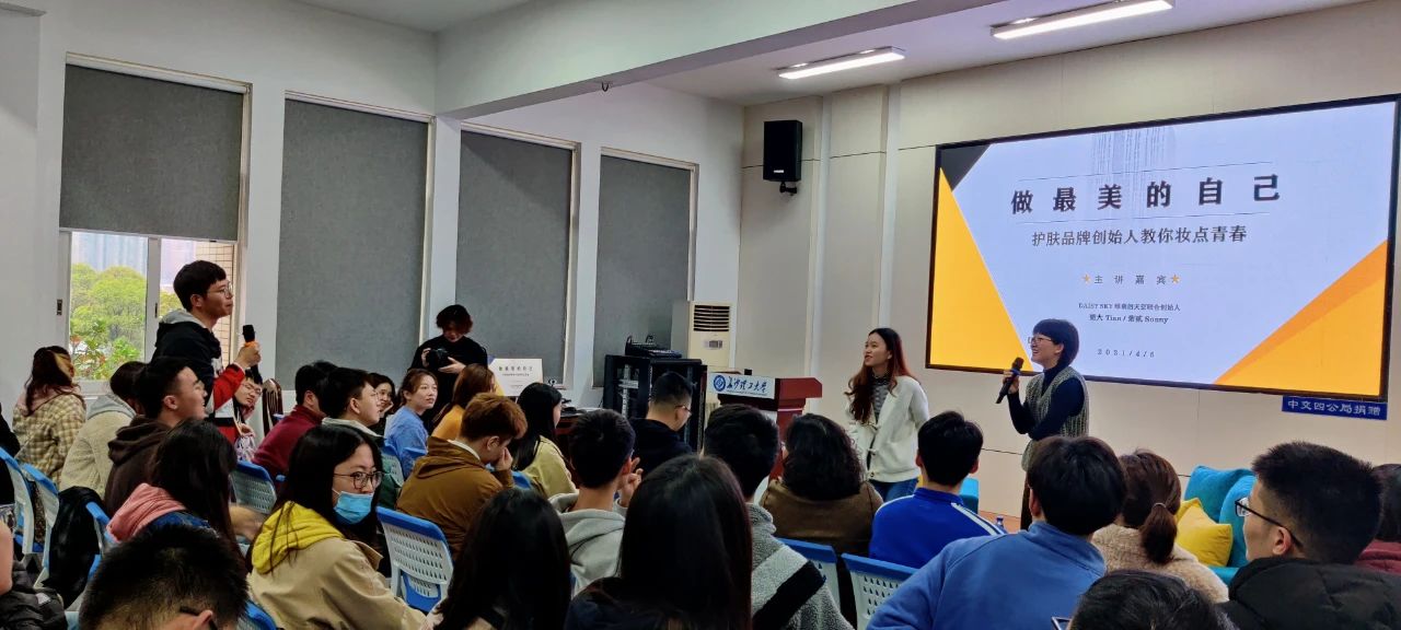 通过此次活动,同学们从创业故事中感受到了不一样的“国潮她力量”,在互动环节获得了很多正确的护肤知识,更加深入地了解了皮肤变差的原因和预防措施,避免了今后在护肤时走进误区。