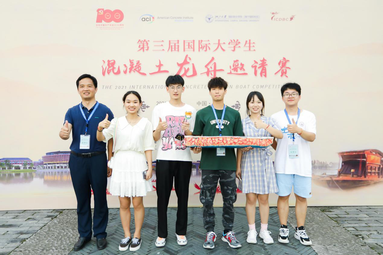 2021年6月13日至14日,我院土木工程专业学子赵敏、王艳、王权辉、董宏扬、柳帅组成的“Lucky Stars”代表队喜获第三届国际大学生混凝土龙舟邀请赛直线竞速PK赛季军和综合三等奖。