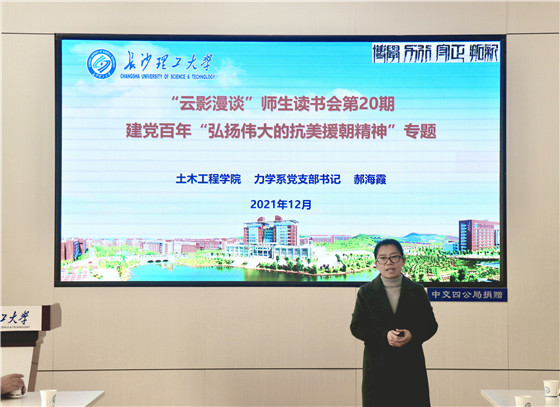 唐雪松教授以“伟大的抗美援朝史”为主题,从抗美援朝历史背景、战争进程与深远影响三个方面进行阐述。以叙事形式介绍了抗美援朝整个时间线以及当时的国际国内局势,他谈到“党领导人民在过去的100年里写下了光辉篇章。我们坚信我们伟大的党也一定能够带领全国人民,在新的世纪继续谱写出更加壮丽的篇章。”