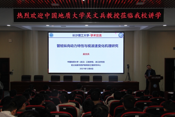 2021年12月8日下午,受我院邀请,中国地质大学(武汉)吴文兵教授在工科二号楼B302为师生做了一场题为“管桩纵向动力特性与视波速变化机理研究”的学术报告。本次报告会由学院副院长曾铃主持,副院长韩艳、岩土与隧道工程系主任张永杰及有关专业的老师、博士生、硕士生共100余人参加。