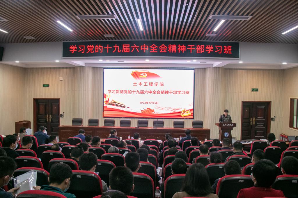 为持续深入学习贯彻党的十九届六中全会精神和省第十二次党代会精神,以“关键少数”带动“绝大多数”,大力推进一流土木工程学院高质量发展,4月15日,土木工程学院举办学习贯彻党的十九届六中全会精神干部学习班。校党委副书记刘建民,校党委组织部副部长靳攀科应邀参加,学院全体领导班子成员,关工委常务副主任,教工党支部书记、支委,各系室主任、副主任,青年骨干教师和全体辅导员参加学习班,院党委副书记黄阿明主持会议。