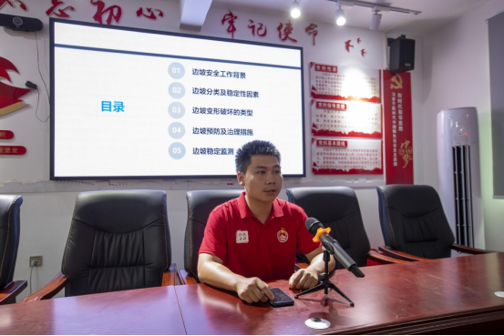 揭牌仪式后,专业实践团面向村干部与村民代表开展了房屋桥梁边坡安全科普讲座。向村民介绍了造成房屋损坏的几种原因,并科普了自查房屋安全隐患的“五步排除法”,通过图片和视频展示了房屋违规建造、违规改造和不合理使用所造成的安全事故,帮助村民提高安全建房、安全用房意识,从思想上杜绝房屋安全事故的发生,为保障坪山村住房安全注入知识的能量。