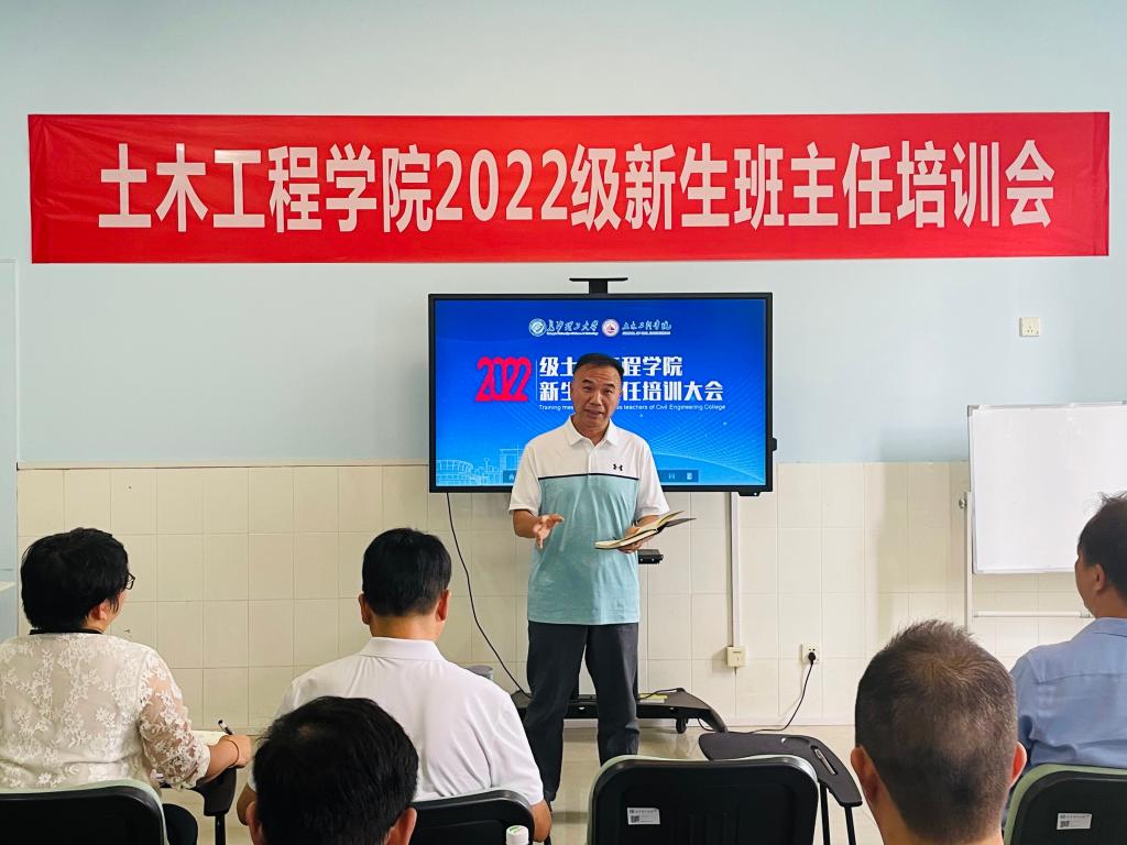 为扣好新生入学的第一粒扣子,发挥班主任队伍在思想政治工作中的骨干力量,凝聚三全育人合力,8月28日,土木工程学院在金盆岭校区16教312召开了2022级新生班主任培训大会。学院党委书记江河,组织员柳翼,优秀班主任代表陈历强、2022级新生辅导员李小军、林安妮及2022级全体新生班主任参加会议。学院党委副书记黄阿明主持培训会。