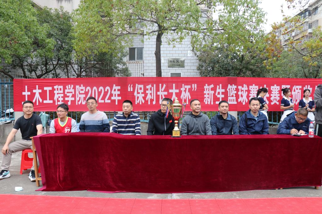 为丰富学生课余生活,提高学生综合素质,增强团队精神和班级凝聚力,展现土木学子积极向上的精神风貌,11月13日,引人瞩目的土木工程学院2022年“保利长大杯”新生篮球赛总决赛正式打响,土木2204班与工力2201班强强对决,上演了激动人心的“巅峰之战”!学院党委书记江河、院长王磊莅临观看比赛并出席颁奖仪式。