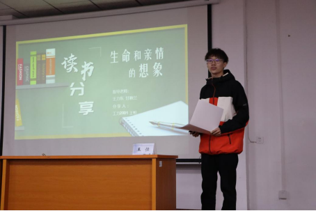 学生代表王恒以“生命和亲情的想象”为主题,向大家讲述了史铁生《我与地坛》的阅读感悟,他认为比起鸡汤,更应该把这本书当作果实去品尝,通过史铁生对他人生命的沉思和自己生命的沉思,王恒也找到了关于如何面对生命中的艰难困苦的问题的解答:“史铁生虽然身坐轮椅,但是心灵无比丰富,他在大把时光中沉思,最后得到生命的真谛。生命本来就是不圆满的,生命的意义本来就是在于自己的选择和抗争之中,只有勇敢地面对命运的残缺,挑战命运,才能体现出生命的价值来。”通过兼具理性与感性的分享,向大家讲述了生命的意义,给人以极大的启迪意义。