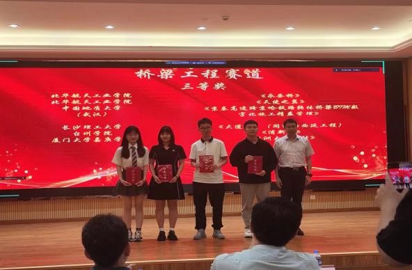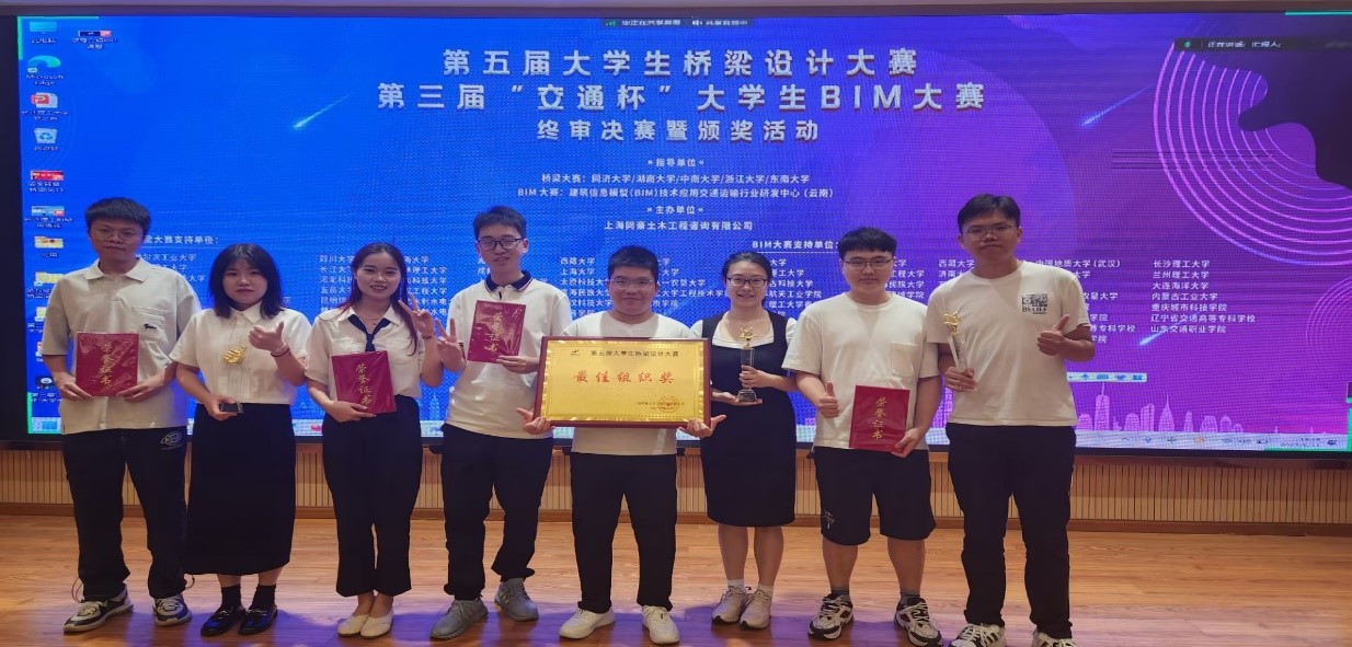 在学院裴必达老师的悉心指导下,决赛当天,伟德学生与浙江大学、兰州交通大学、中国地质大学(武汉)等一流高校学生同台对决,经过项目汇报和专家组提问等一系列环节评审,最终伟德的古筝行动组和我们都队分别在第五届大学生桥梁设计大赛中获得最佳结构设计奖B类一等奖和二等奖,并且两只支队伍在第三届交通杯大学生BIM大赛中也荣获了桥梁工程赛道二等奖和三等奖,同时伟德被评得最佳组织奖。