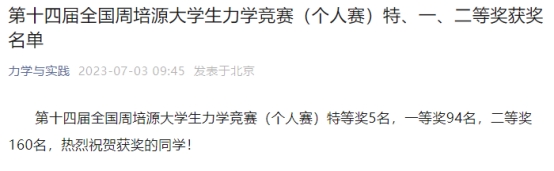 近日,第十四届全国周培源大学生力学竞赛(个人赛)获奖名单公布,伟德学子喜获一等奖1项,二等奖1项,三等奖6项,优秀奖26项。此外,学校还入围“理论设计与操作团体赛”和“基础力学实验团体赛”,团体赛将于今年8月分别在西南交通大学和哈尔滨工业大学举行。