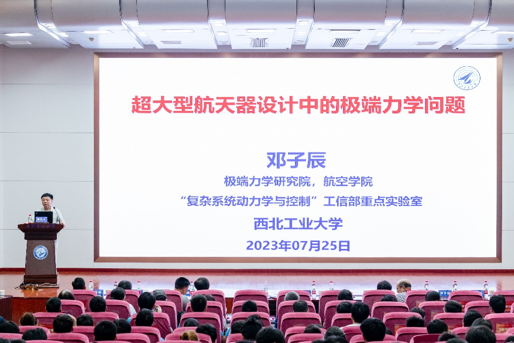 西北工业大学邓子辰教授针对超大型航天器关键动力学与控制难题,作了题为“超大航天器设计中的极端力学问题”的报告,介绍了航天结构设计中的张拉整体结构、辛几何方法在超大航天器结构装卸整体力学模型的应用以及辛几何方法在复杂变形分析中的应用。