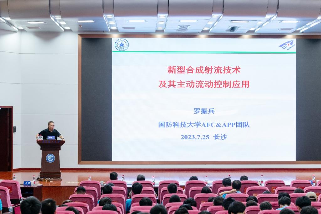 国防科技大学罗振兵教授作了题为“新型合成射流技术及其主动流动控制应用”的报告,介绍了新型合成射流技术(中国技术)中的合成双射流方案和主动流动控制飞行器(中国方案)。