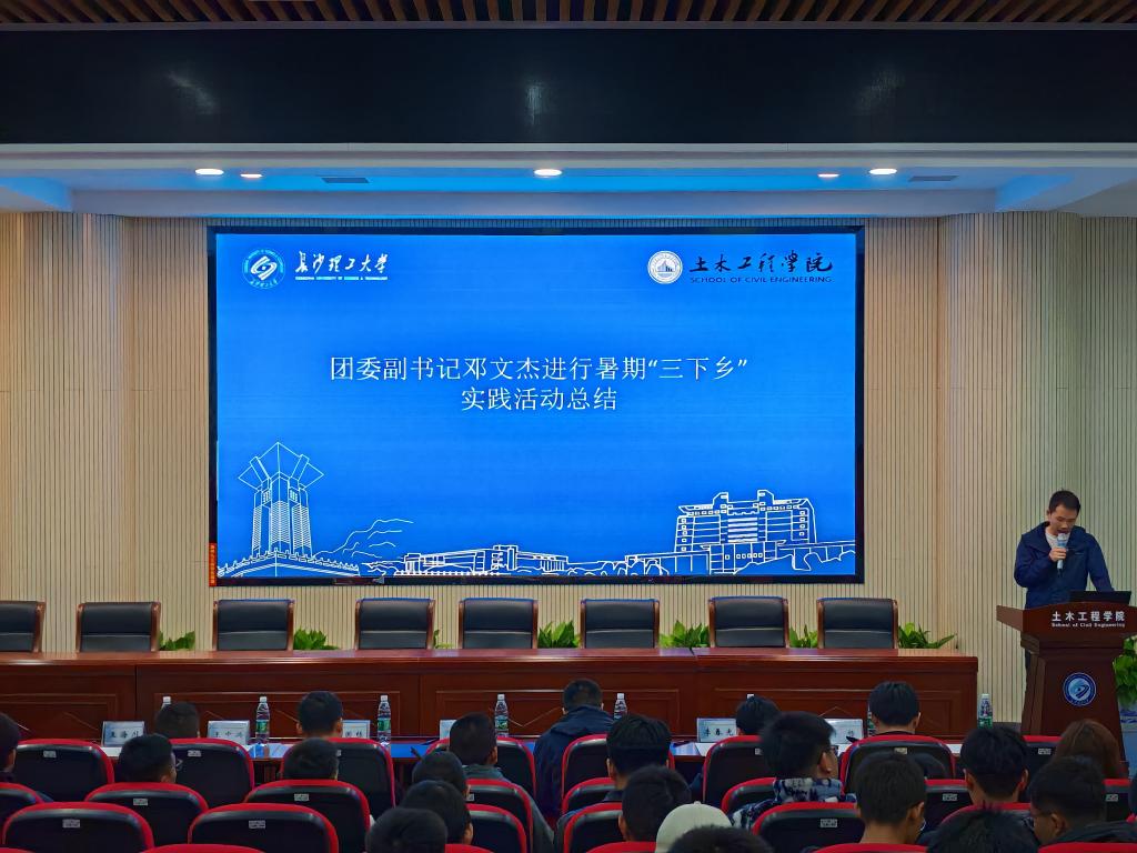 12月8日晚,土木学院于工二B302召开2023年暑期“三下乡”社会实践活动总结大会,专业老师李春光、李杨,学工办老师刘文成、彭怡峰、王中兴、汪国栋、邓文杰、各实践团队成员及各年级学生代表150余人参加会议。