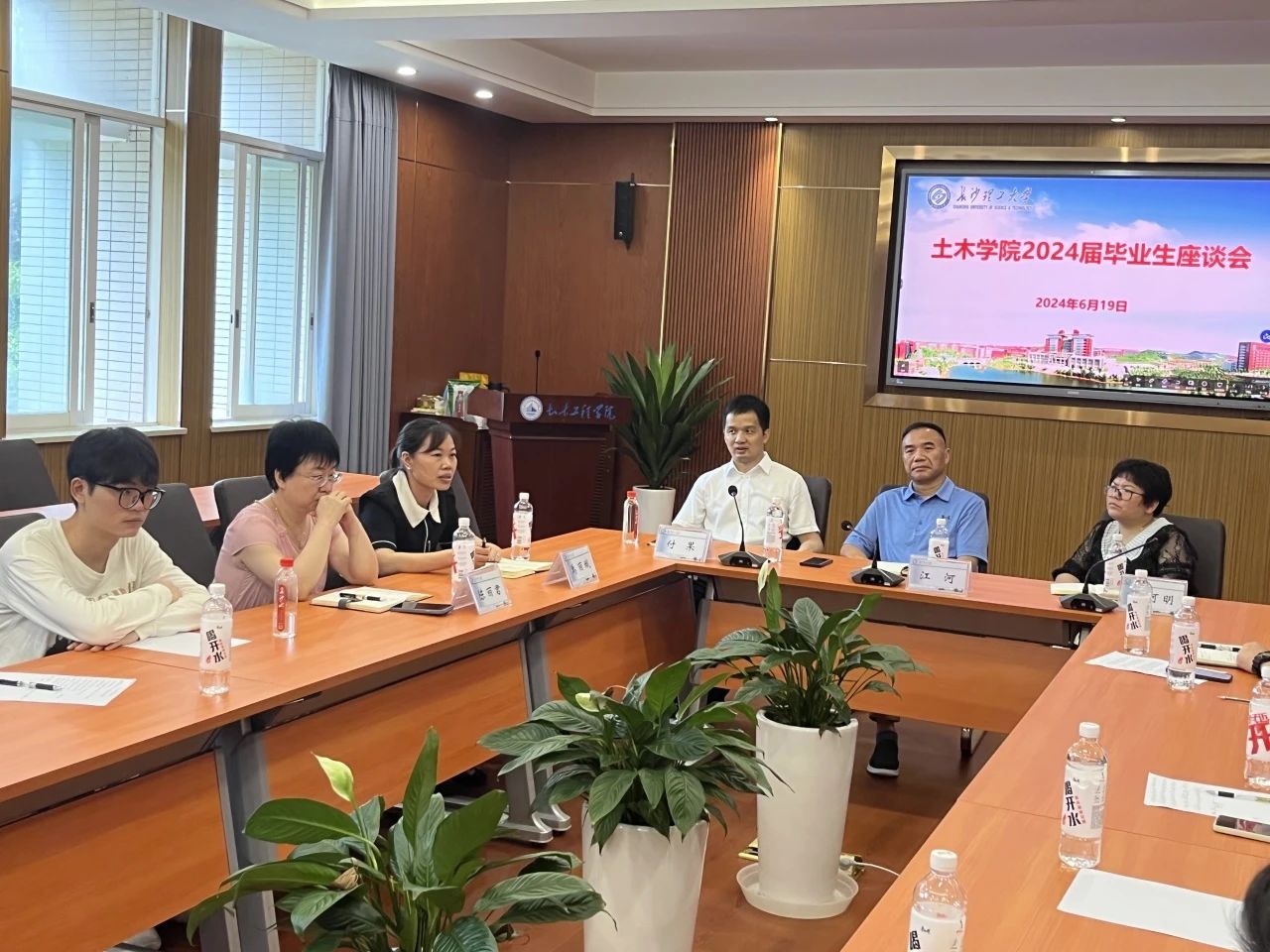 6月19日,土木工程学院在工二A304举办2024届毕业生座谈会。土木学院江河书记、黄阿明副书记、蒋友宝副院长、付果副院长、科研办禹丽娥老师、教务办陈丽君老师、学工办汪国栋老师、刘文成老师、邓文杰老师、2024届本科生、研究生毕业生代表参加本次座谈会。