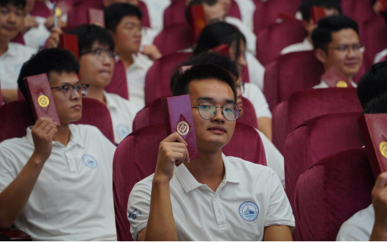 在集体宣誓环节,全体新生以坚定的信念和铿锵的誓言,表达了他们对学术诚信、学术道德、学术尊严的坚守与追求;对创新精神、立志报国信念的践行与弘扬。
