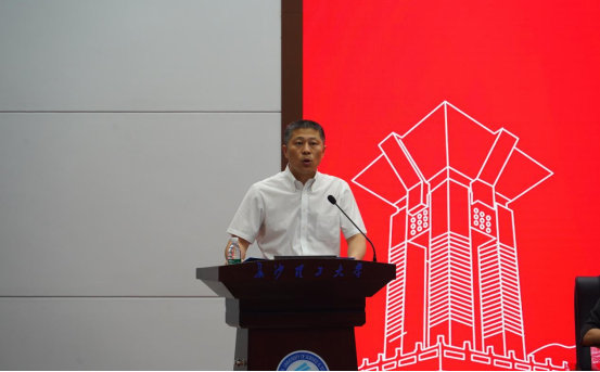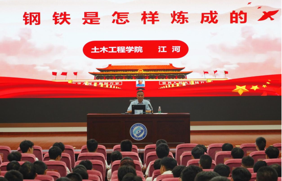 典礼结束后,江河为2024级研究生新生讲授了第一堂党课。他通过五位党员的矢志奋斗的故事勉励新生坚定信仰、潜心科研、追求卓越、勇于担当。他希望新生以学习为本,以兴趣为基,以实干为要,练就过硬本领,报效伟大祖国,以青春力量助力学校“百强大学”建设。