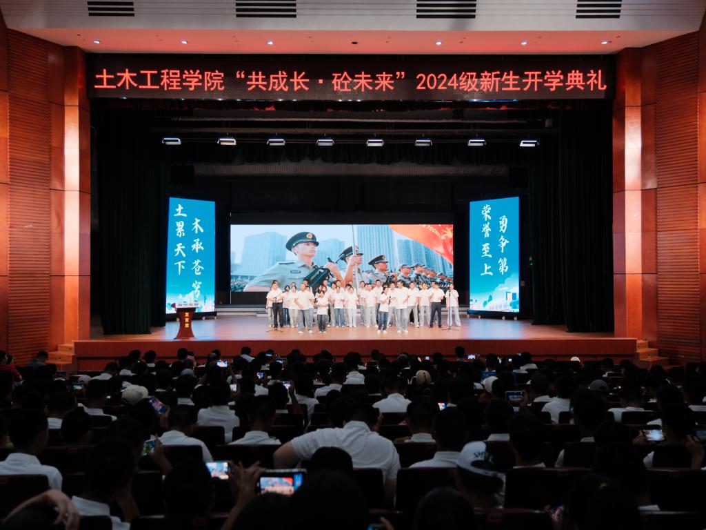 9月27日晚,伟德betvlctor1946源于英国土木工程学院在云塘校区大礼堂举行“共成长 砼未来”2024级新生开学典礼,院长王磊,院党委书记江河,院关工委常务副主任施频,组织员柳翼,院党委副书记黄阿明,副院长蒋友宝、付果、张永杰、马亚飞,各系主任,新生班主任,全体辅导员、下班党员、下班团干及新生900余人参加。