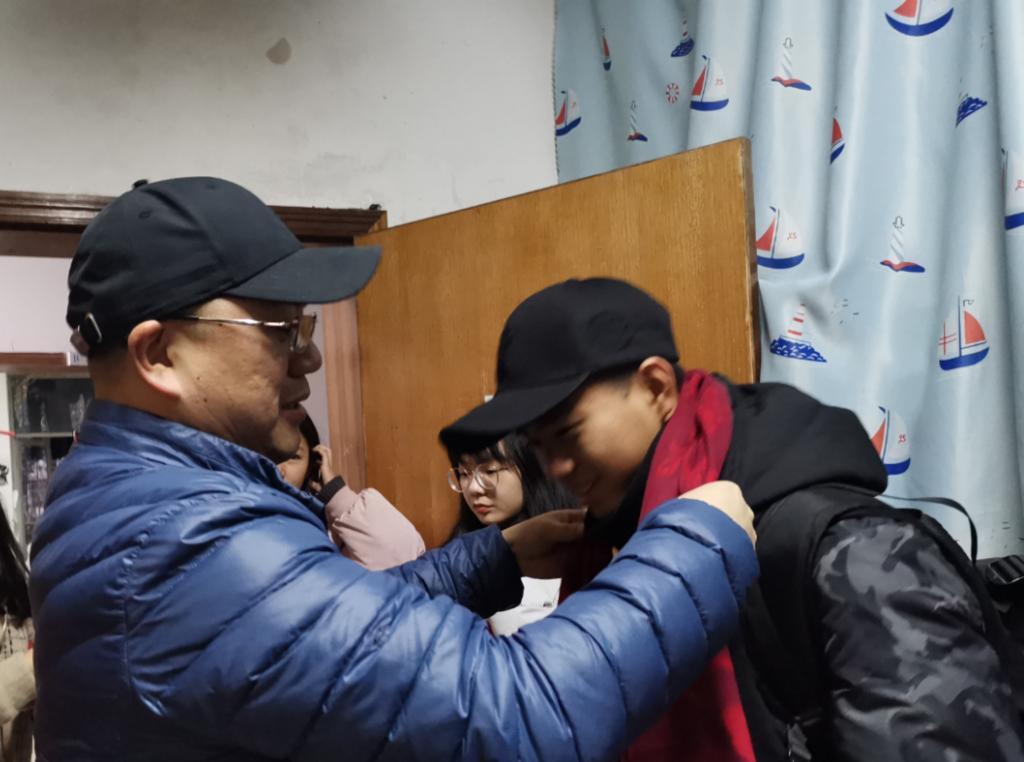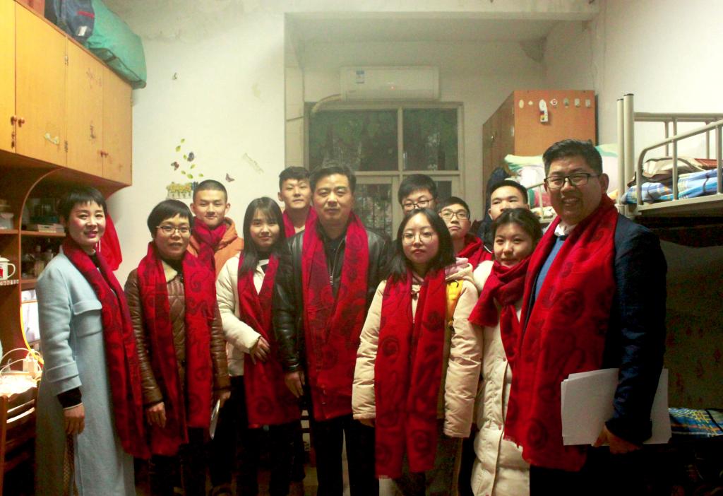 每到一间寝室,各位领导、老师都与学生们亲切交谈,了解大家目前的备考状态,鼓励大家要坚定自信,保持好的心态,一定可以取得优异的成绩。王桂尧副院长强调,“自信是成功的法宝,考场也是战场,狭路相逢勇者胜”。丁丹副书记也为大家送上考前祝福,祝福大家考试顺利,考出自己的真实水平,考上自己心仪的学校。其他领导、老师也提醒大家自觉遵守考试纪律和考场规则,不要相信不法分子的蛊惑。慰问结束后,各位领导、老师亲手为每位考研学生系上印有“福”字的红围巾,这不仅是殷殷祝福,更是老师们对考研学子的期待和鼓励,是坚持到底的必胜信念,希望所有学生能在即将到来的考研考试中“鸿运当头”。到场的同学们脸上都洋溢着幸福的微笑并表示,一定不辜负学院领导和老师寄予的厚望,在几天时间里,坚定信心、一鼓作气,争取以优异的成绩回报学院的关心和支持。
