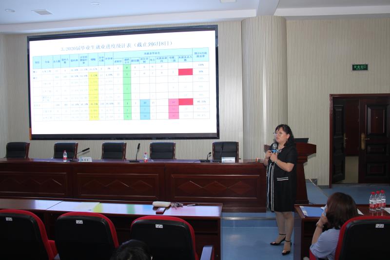 黄阿明对学院2020届毕业生的就业工作进行了汇报。她通过对比近三年以来(2018-2020)学院本科生与研究生的签约、升学、就业数据进行分析,指出当前就业工作中存在的问题及对策,希望能够调动更多的教师关心学生就业,加强与学工队伍沟通,形成育人合力。