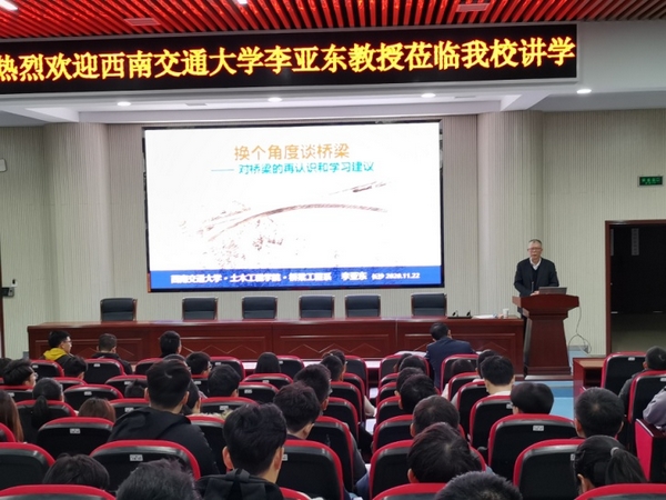 2020年11月23日上午,受土木工程学院邀请,西南交通大学土木工程学院桥梁工程系李亚东教授莅临伟德工科二号楼B302学术报告厅,作了题为“换个角度谈桥梁——对桥梁的再认识和学习建议”的学术报告。报告会由学院院长李传习教授主持,部分教师、研究生及本科生参加了报告会。