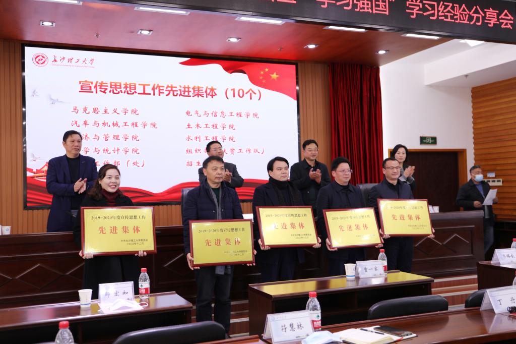 近日,2019-2020年度宣传思想工作表彰大会暨“学习强国”学习经验分享会在云塘校区一办九楼会议室举行。会上,邹宏如宣读了表彰文件,通报了2019-2020年度宣传思想工作先进集体、先进个人、优秀学生通讯员表彰名单,“学习强国”学习先进单位和学习达人、学习之星名单。土木工程学院获评学校2019-2020年度宣传思想工作先进集体称号。张建仁、曾有艺、郝海霞、李学罡、蒋志明5人获得“学习强国”学习之星称号。