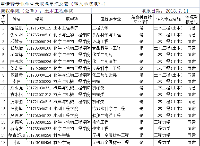 根据《伟德betvlctor1946源于英国本科生转专业管理办法》及《2017级申请转入土木工程学院本科专业遴选办法》,经学院转专业工作领导小组对申请转入学生进行审核,有如下同学拟被录取,公示如下,为期三天,如有异议,请以书面形式报工二A416,电话85256007。