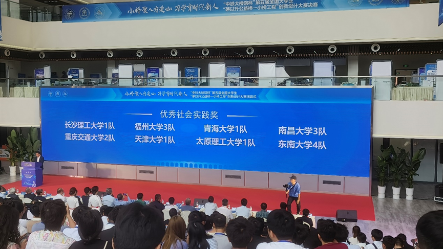 “小桥聚八方爱心,习学育时代新人”——2023年9月21-23日,由北京茅以升科技教育基金会、西南交通大学联合主办,西南交通大学土木工程学院承办的“中铁大桥院杯”第五届全国大学生茅以升公益桥-小桥工程”创新设计大赛决赛在成都西南交通大学犀浦校区圆满落幕。全国大学生茅以升公益桥-小桥工程”创新设计大赛是北京茅以升科技教育基金会联合共青团交通运输部直属机关委员会、教育部高等学校交通运输类专业教学指导委员会共同发起的一项公益慈善建桥大学生赛事项目。本次大赛入围决赛的参赛团队共73组,将近300余人参加线下评审,超过千人参加线上直播。