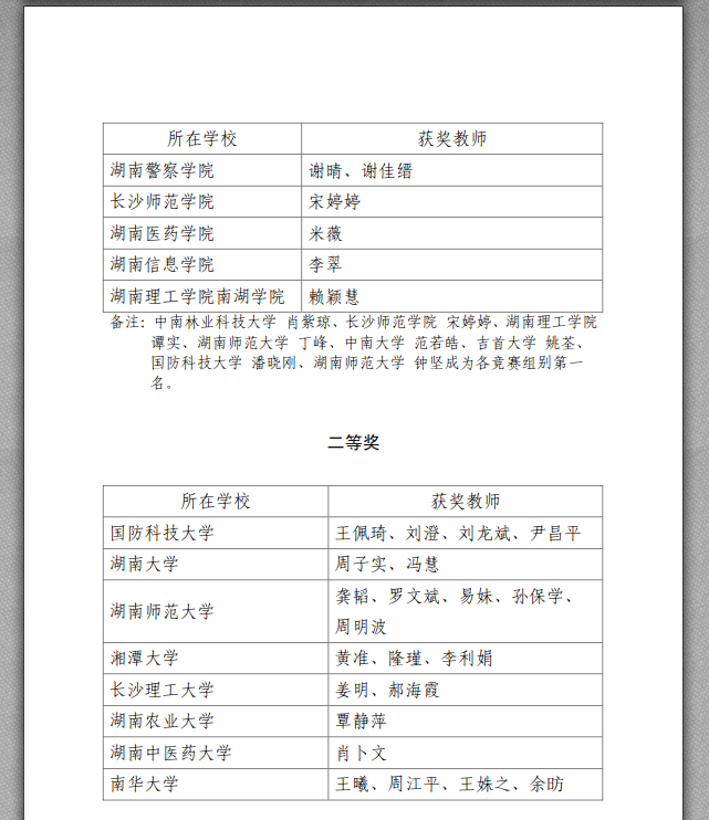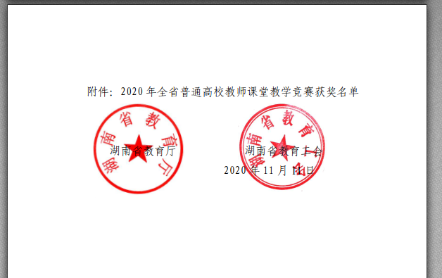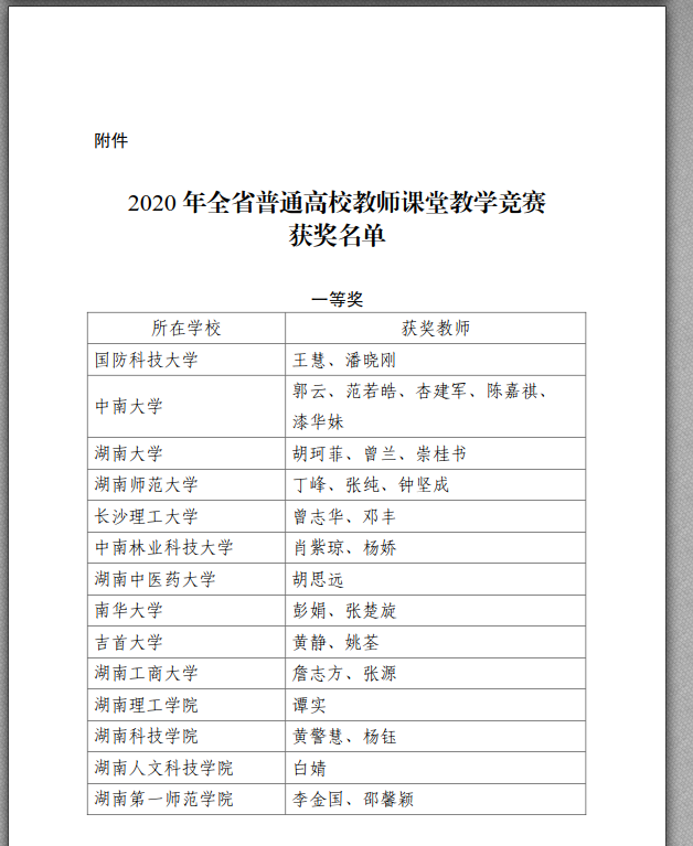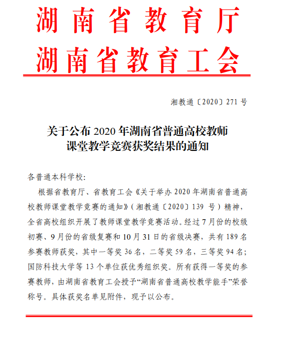 关于公布2020年湖南省普通高校教师课堂教学竞赛获奖结果的通知